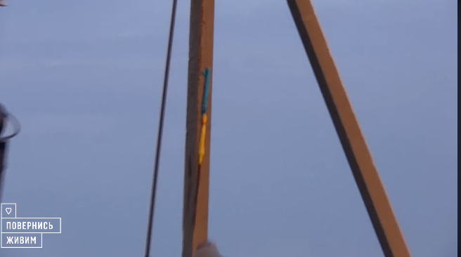 На видео видно, как два украинских разведчика пробрались к железобетонной опоре и установили там украинский флаг.