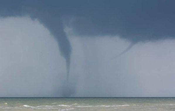 На Херсонщине зафиксировали смерчи. Два вихря поднялись над Азовским морем недалеко от Бирючего острова.
