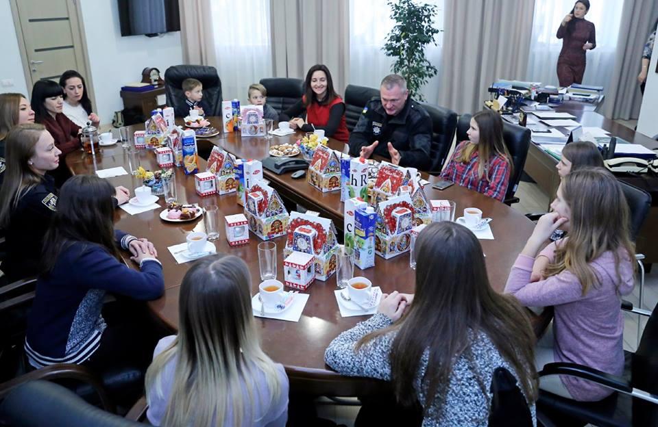 К главе Национальной полиции Сергею Князеву на чай с пирожными пришли дети, с которыми в этом году по разным причинам пришлось работать ювенальной полиции.