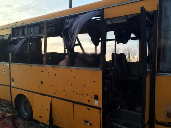 13.01.2015 российские террористические группировки расстреляли из реактивных установок град на автодороге "Славянск-Донецк-Мариуполь" возле поселка Бугас автобус сообщением с. Златоустовка - г. Донецк.