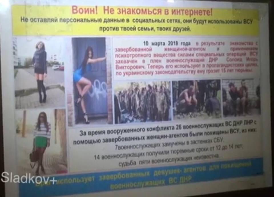 По данным оккупантов, завербованные украинскими спецслужбами женщины якобы знакомятся с боевиками в соцсетях, а затем (с "использованием психотропных веществ" выманивают их на подконтрольную Украине территорию.