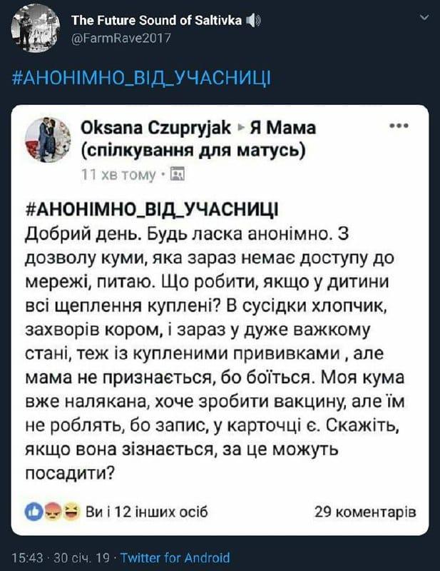 Как написала в одном из интернет-сообществ анонимная пользовательница, ее кума запаниковала, когда соседский ребенок с "купленными" прививками тяжело заболел корью. Ребенок кумы - также с купленными справками. Напуганная мать уже и рада была бы сделать вакцинацию, но запись в карточке есть, а значит "повторную" прививку никто не станет делать.