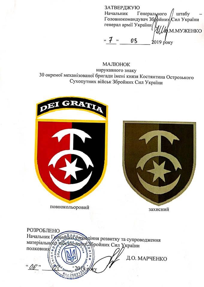 Начальник Генерального штаба ВСУ Виктор Муженко утвердил нарукавные эмблемы трех боевых бригад.