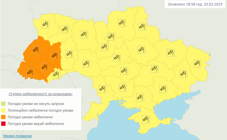 Украинский гидрометцентр предупреждает о том, что до конца суток 11 марта во Львовской области ожидается чрезвычайный ветер юго-западный с переходом на северо-западный с порывами 35-40 м/с.