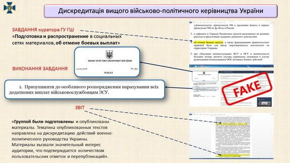 Для дискредитации высшего военно-политического руководства нашего государства участники группы «Сапфир» осуществляли подготовку и распространение в социальных сетях фейковых материалов. В частности фейковый приказ Министерства обороны Украины о якобы приостановлении начисления всех дополнительных выплат военнослужащим Вооруженных Сил.