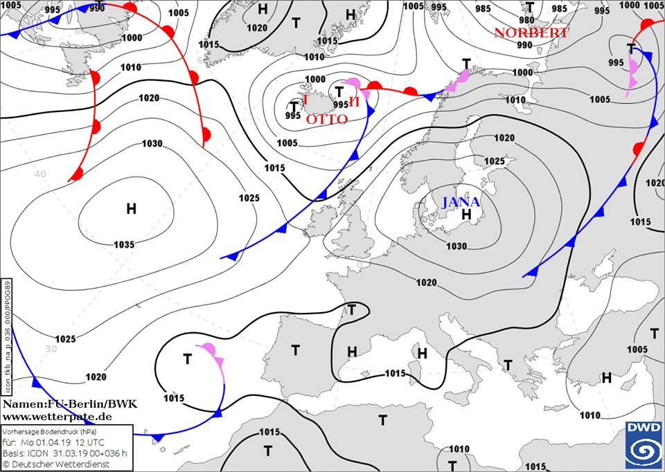 По словам Диденко, антициклон на имя Jana организует завтра солнечную погоду, только на востоке ожидаются дожди, местами мокрый снег.