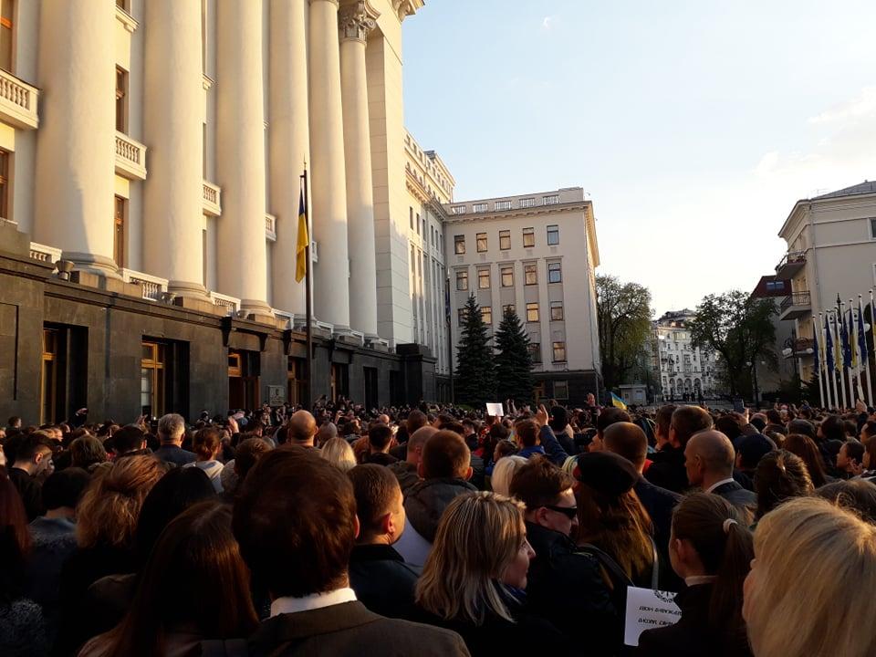 В столице под Администрацией президента на улице Банковой на акцию "Спасибо, Петр!" собрались несколько тысяч человек.