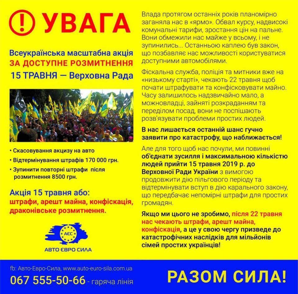 "Евробляхеры" протестуют против штрафов за несвоевременную растаможку автомобилей и требуют от депутатов продлить льготный период, который должен закончиться 22 мая.