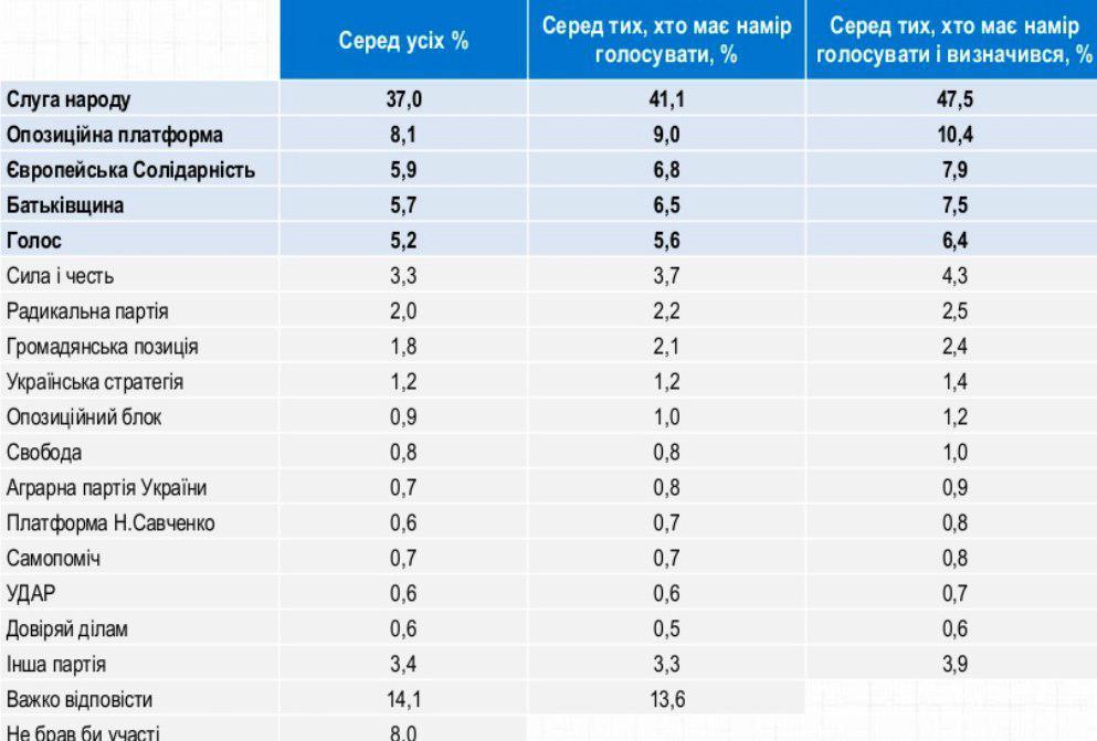 Согласно результатам опроса, лидером электоральных симпатий среди политических сил все так же является партия «Слуга народа».