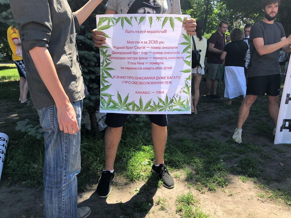 Отмечается, что среди митингующих есть онкобольные, которым каннабис нужен для снятия боли.