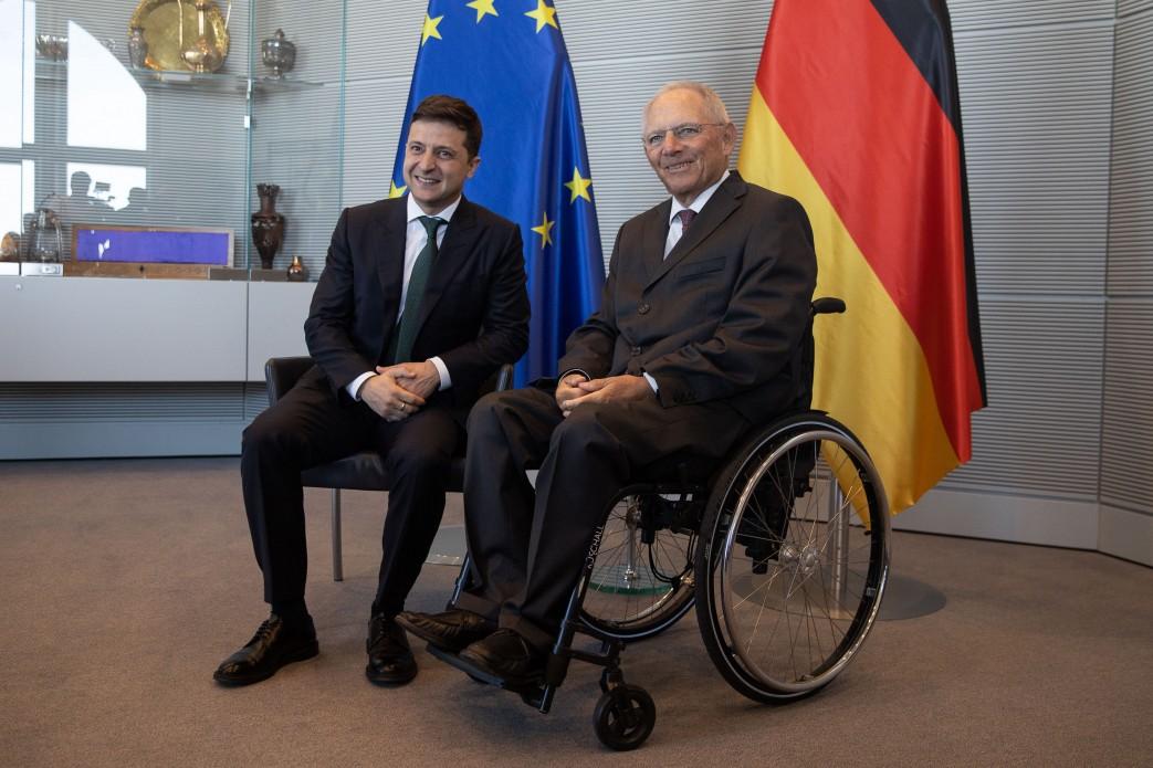 Президент Украины Владимир Зеленский во время официального визита в Федеративную Республику Германия встретился с председателем Бундестага ФРГ Вольфгангом Шойбле.