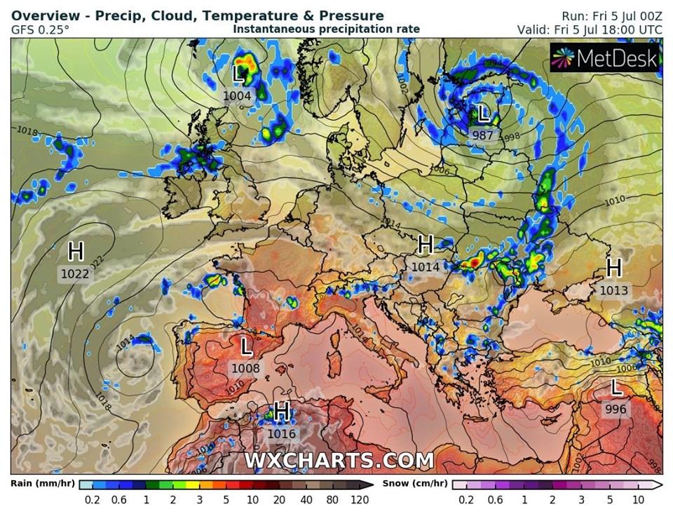 По ее словам, в воскресенье, 7 июля, на Ивана Купала, кратковременные дожди с грозами ожидаются на западе и севере Украины, а вечером в воскресенье подойдут к центральной части. На остальной территории без осадков.