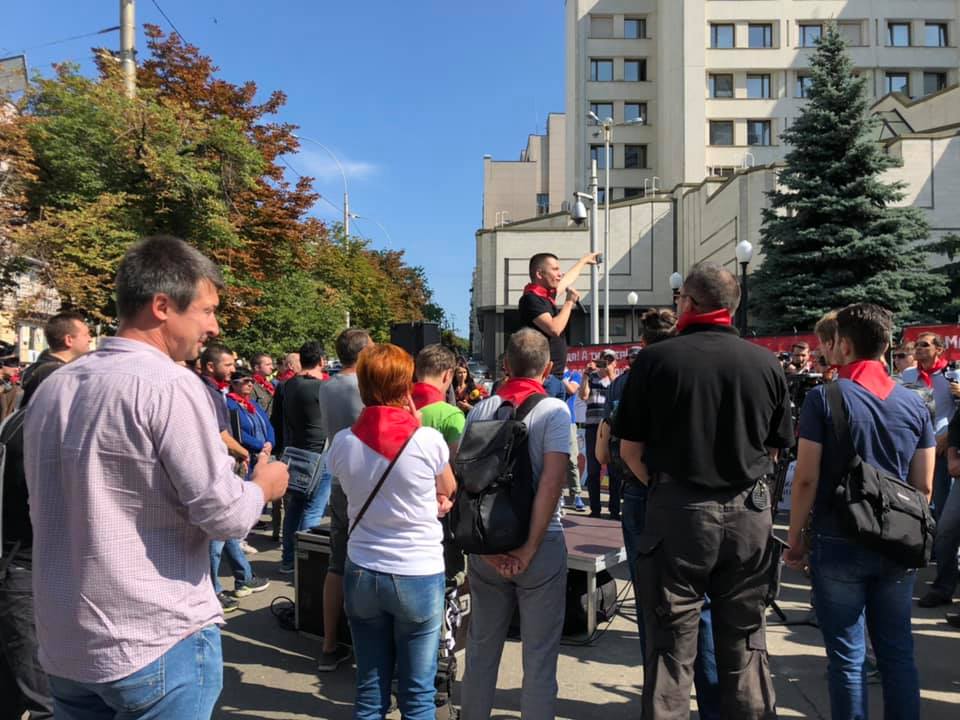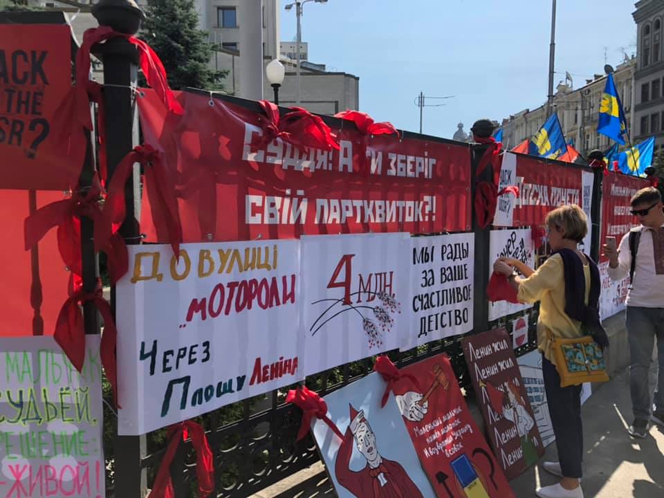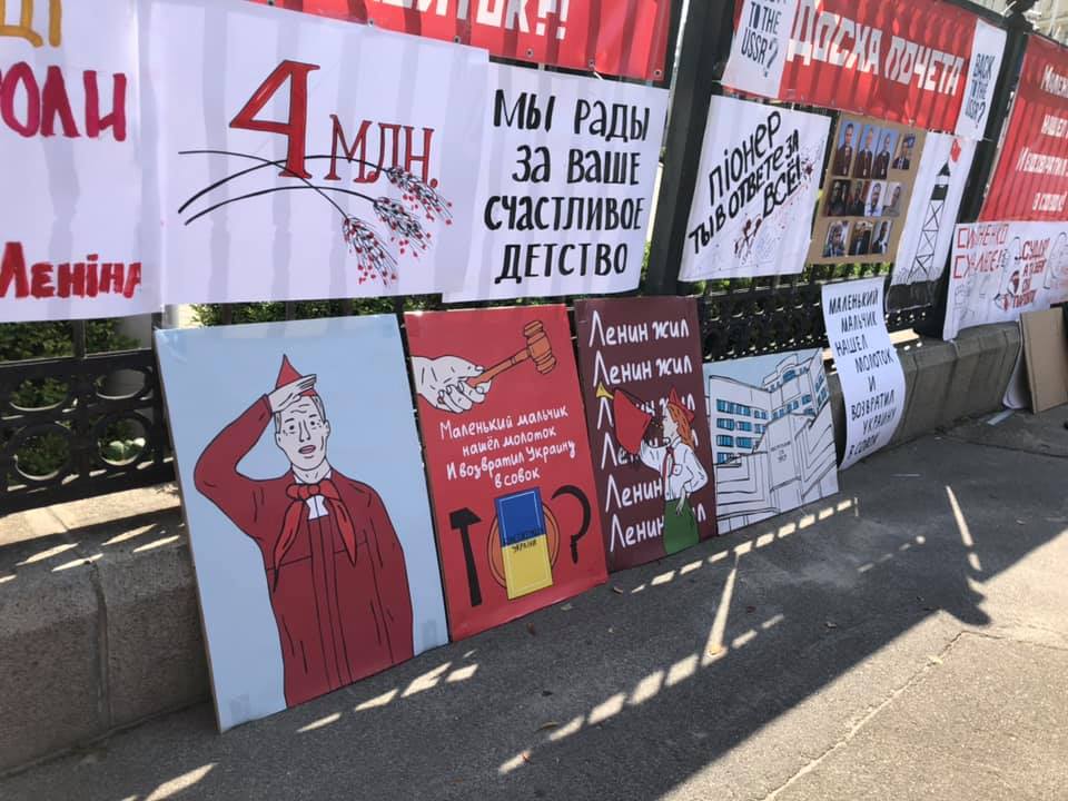 Сообщается, что мирная акция длилась полчаса. Участники митинга развесили баннеры и плакаты против отмены декоммунизации. Под стенами КСУ раздавали «пионерские галстуки», которые затем символически повязали на забор Конституционного Суда Украины.