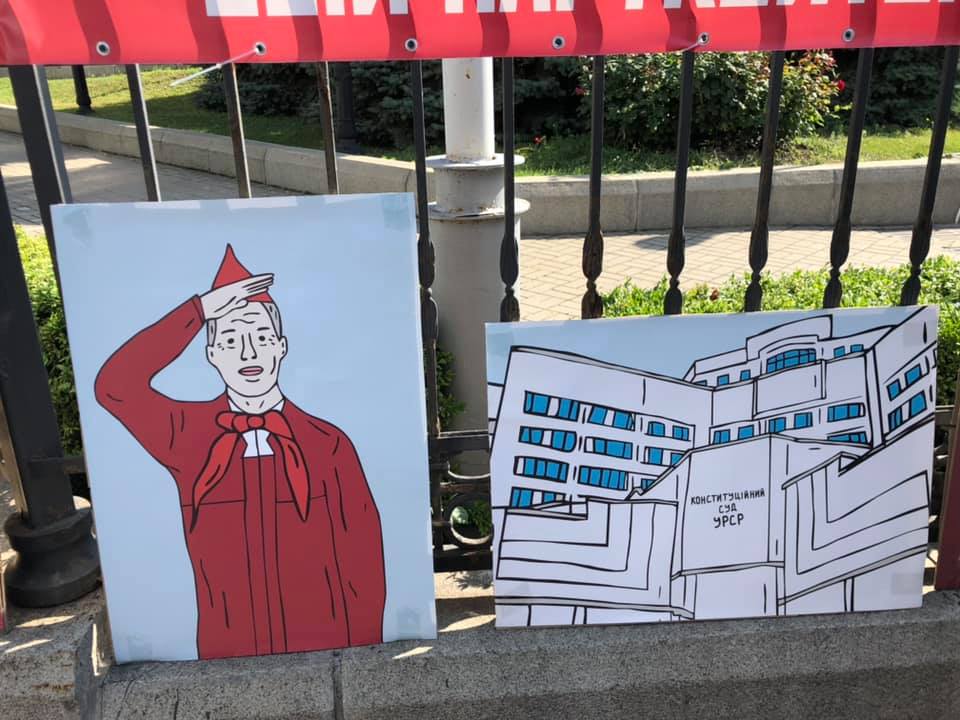 "Сегодня, 16 июля, мы пришли под стены Конституционного Суда Украины, чтобы высказаться против отмены декоммунизации и напомнить судьям КСУ, что сознательные украинцы радуются «за чье-то счастливое детство», но не хотят повторения кровавого коммунистического режима", - говорится в публикации.