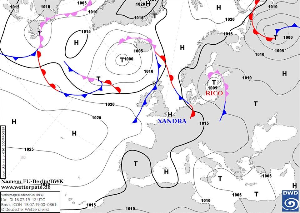 "Пока антициклон с несколько депрессивным названием Xandra (как не Кассандра, так Хандра)) выметает дожди из большинства стран Европы, включительно с южной частью Украины, северо-восточная циклоническая деятельность принесет нам завтра, 17 июля, кратковременные дожди и локальные грозы.