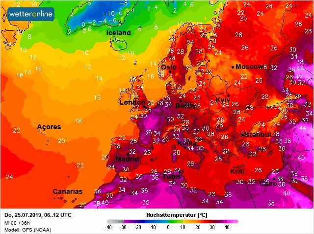 Западная Европа будет едва дышать от сильной жары, на юге и в центре континента также жара, даже в северных Финляндии и Швеции температура воздуха будет достигать +28 и выше градусов.