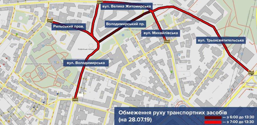 28 июля в связи с праздником Крещения Руси будет ограничено движение транспорта на некоторых улицах Киева до 13.30.