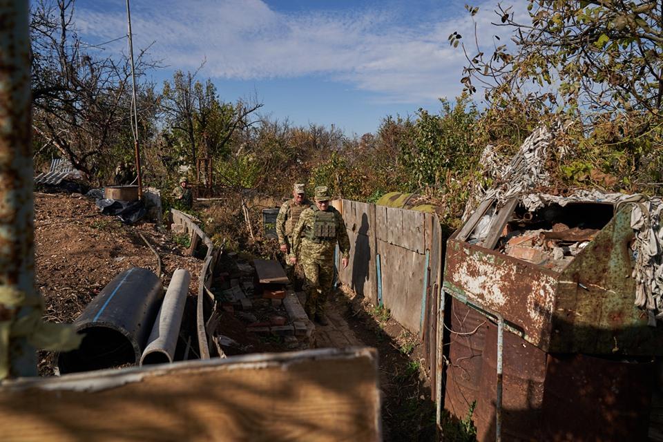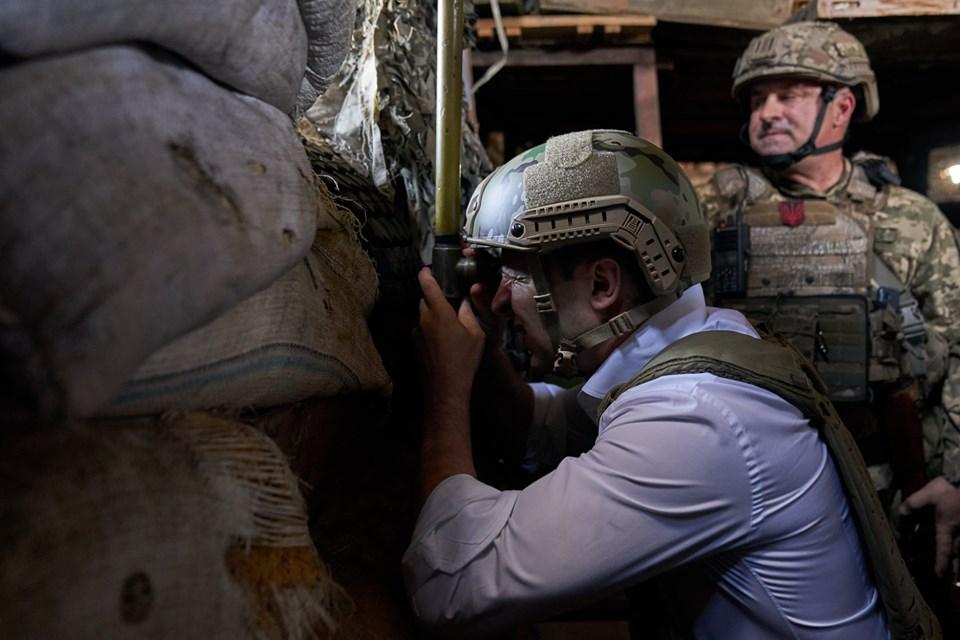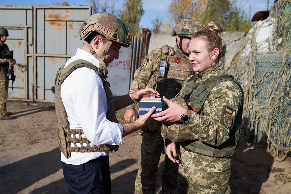 Президент Украины Владимир Зеленский в рамках рабочей поездки на Донетчину ознакомился с ситуацией на линии соприкосновения в зоне проведения Операции объединенных сил, а также с условиями несения службы и проживания украинских военных на передовой.