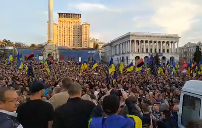 Со сцены выступали общественные деятели, а также ветераны АТО. Звучали лозунги против формулы Штайнмайера, также участники вече высказывались против представителей власти: "Зеленский - вон", "Богдана в отставку" и т.д.