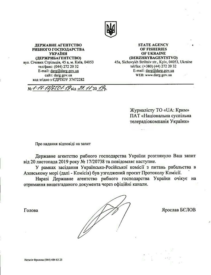 “Сейчас Государственное агентство рыбного хозяйства Украины ожидает получения вышеупомянутого документа через официальные каналы”, - говорится в сообщении.