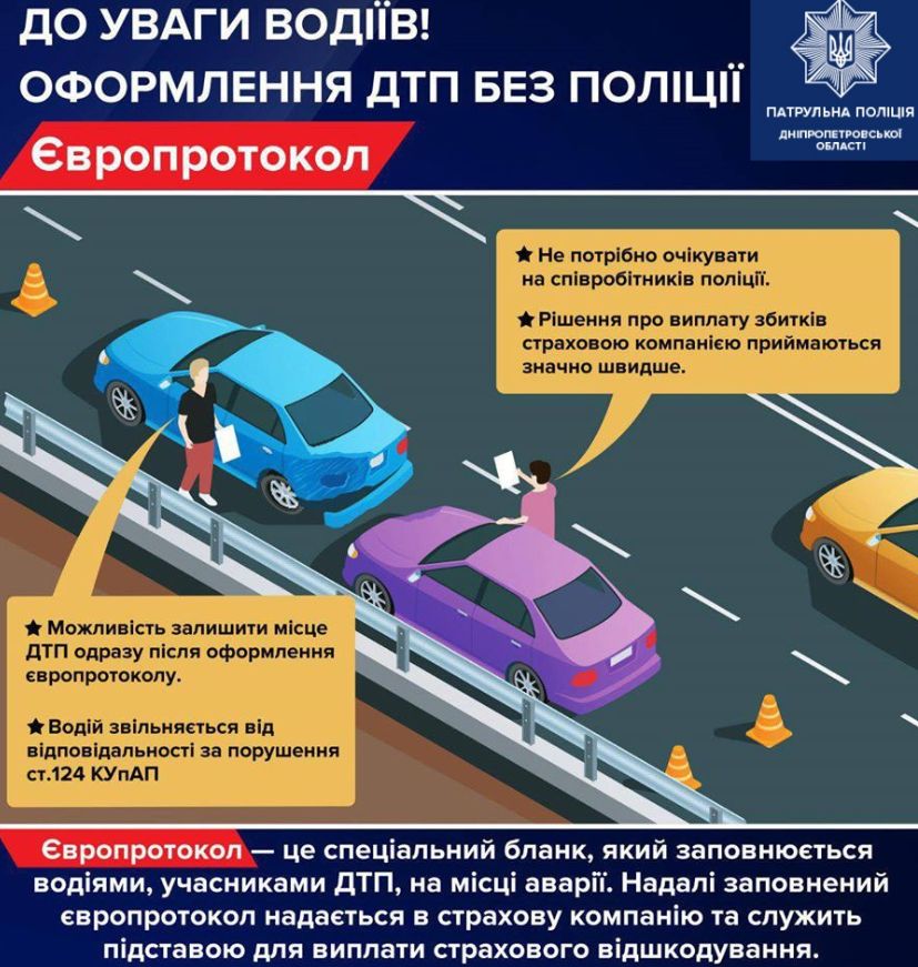 При попадании в ДТП водители могут составить Европротокол, об этом сообщает пресс-служба патрульной полиции Днепропетровской области, передает Час Пик.