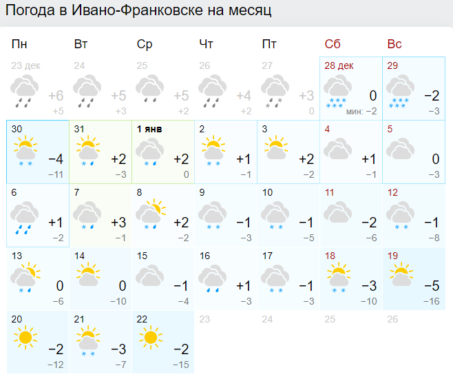 В то же время ресурс Gismeteo прогнозирует украинцам настоящие крещенские морозы. Столбики термометров значительно опустятся во второй половине января, особенно это почувствуют жители восточных областей.