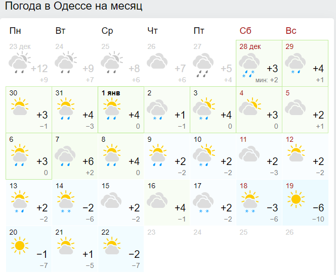 А вот восток страны, если верить сайту, приморозит конкретно. В первой декаде месяца температура будет колебаться от небольших "плюсов" днем до небольших "минусов" ночью, а примерно с 10 января температура начнет ощутимо падать и может достигнуть -20 -24 градусов.