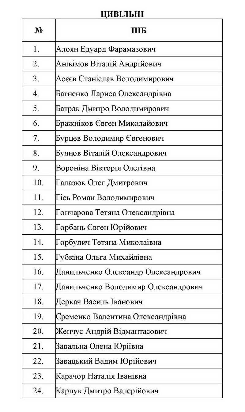 СБУ обнародовала полный список освобожденных украинцев, передает Час Пик со ссылкой на пресс-слежбу ведомства.