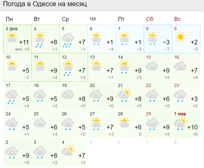 Так, ресурс Gismeteo сообщает, что в Киеве температура воздуха в ночь на 7 февраля упадет до -7 градусов. В пятницу и субботу дневная температура будет составлять -4 градуса, ночью до -9. Уже с воскресенья начнет теплеть и вновь пойдут дожди.