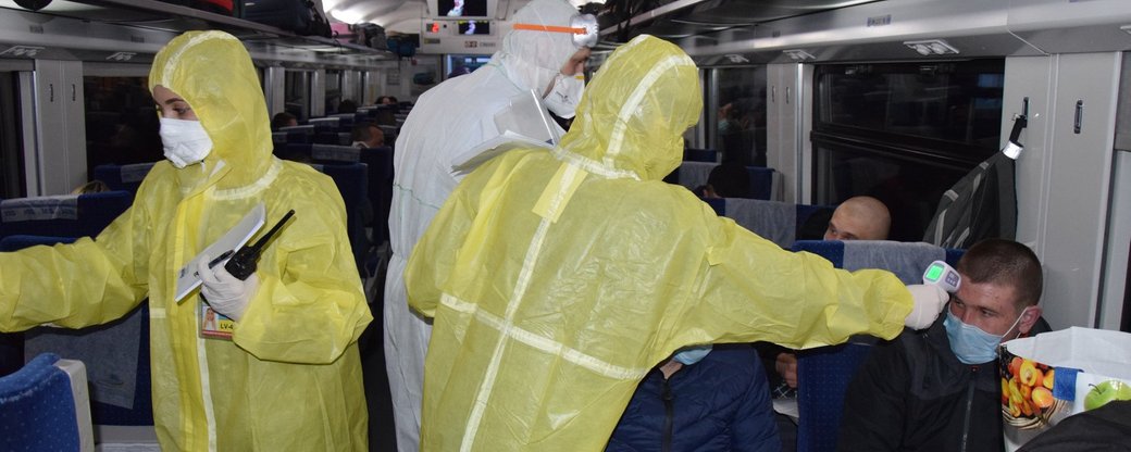 Демченко отметил, что после прибытия в вагоны поднялись пограничники и представители санитарно-карантинных подразделений, которые измерили температуру каждого пассажира и понаблюдали за их состоянием здоровьем.