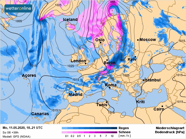 Но, по словам Диденко, 12 мая к нам придет холодный атмосферный фронт, который принесет дожди (на Западе иногда даже мокрый снег), похолодание, штормовой ветер.