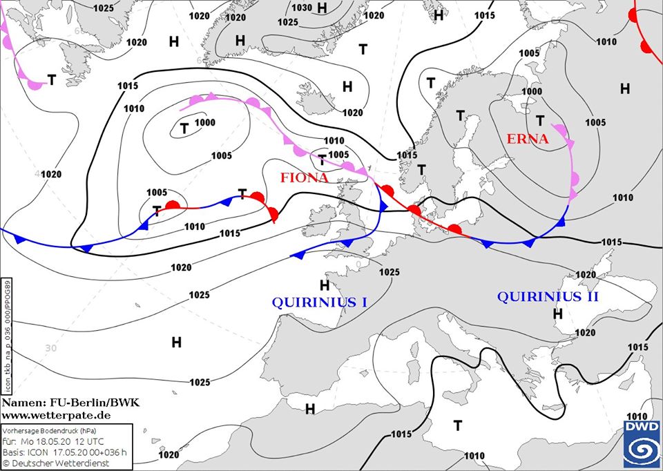 Она отметила, что циклоны Fiona и Erna обусловливают дожди и ветры в северной части Европы. В то же время атлантические антициклоны Quirinius Первый и Второй не будут пускать осадки высоким атмосферным давлением и организуют сухую солнечную погоду в большинстве стран западной, южной, центральной и восточной Европы. Только над Италией локальный циклон обусловит дождь.