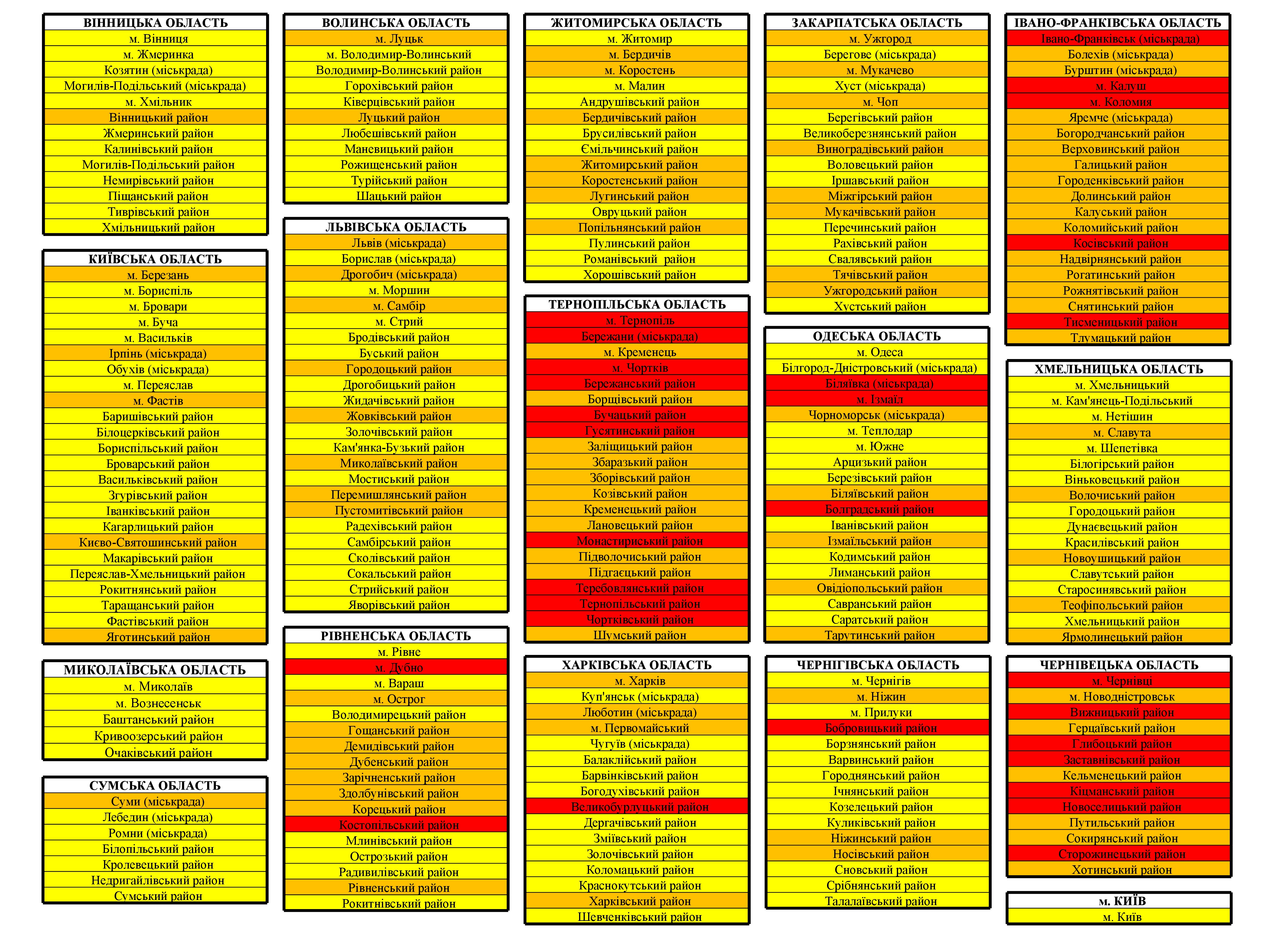 - Ивано-Франковская область: г. Ивано-Франковск, г. Коломыя, г. Калуш, Косовский и Тисменицкий районы;