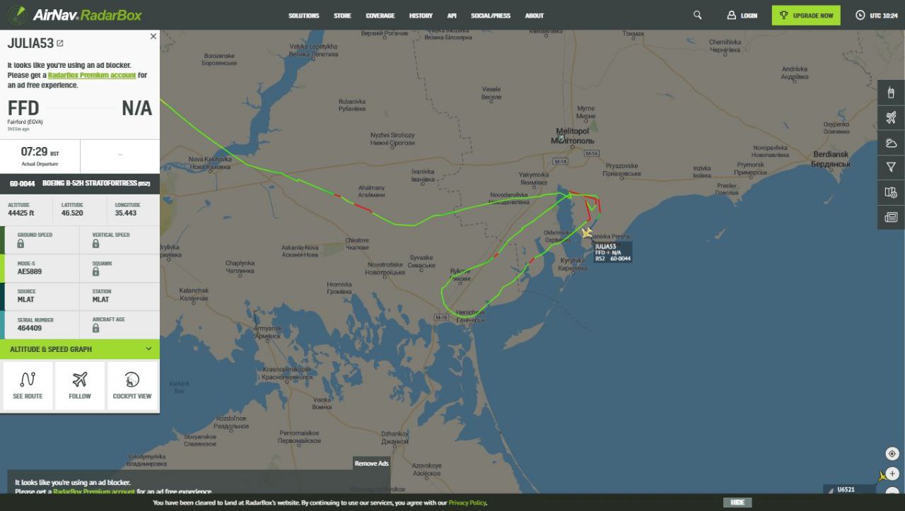 Вчера, 4 сентября, американские бомбардировщики B-52H Stratofortress кружили около Азовского побережья, недалеко от оккупированного Россией Крыма.