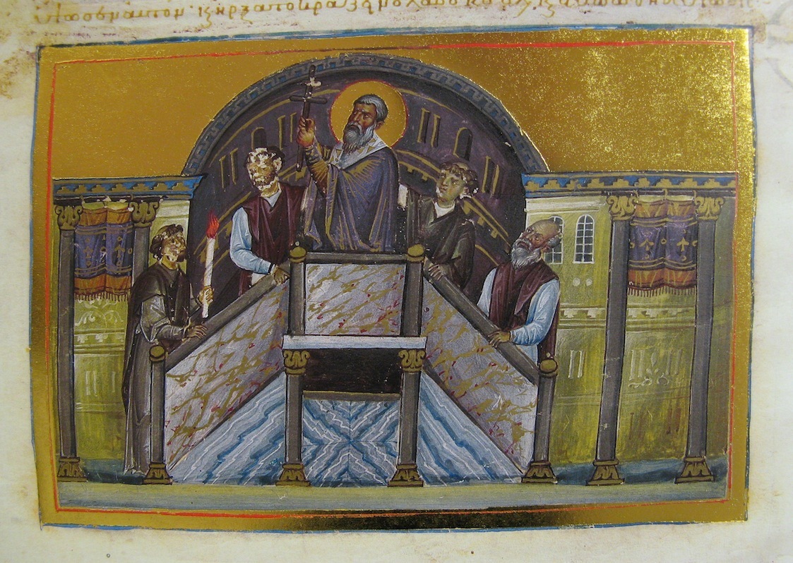Согласно преданию, в 326 году равноапостольная царица Елена отправилась в Иерусалим на поиски христианских святынь. Раскопки проводились на Голгофе, где и был распят Христос. Под землей были обнаружены три креста, несколько гвоздей и доска с надписью "Иисус Назорей, Царь Иудейский". Так были обретены Крест, а также Гроб Господень.