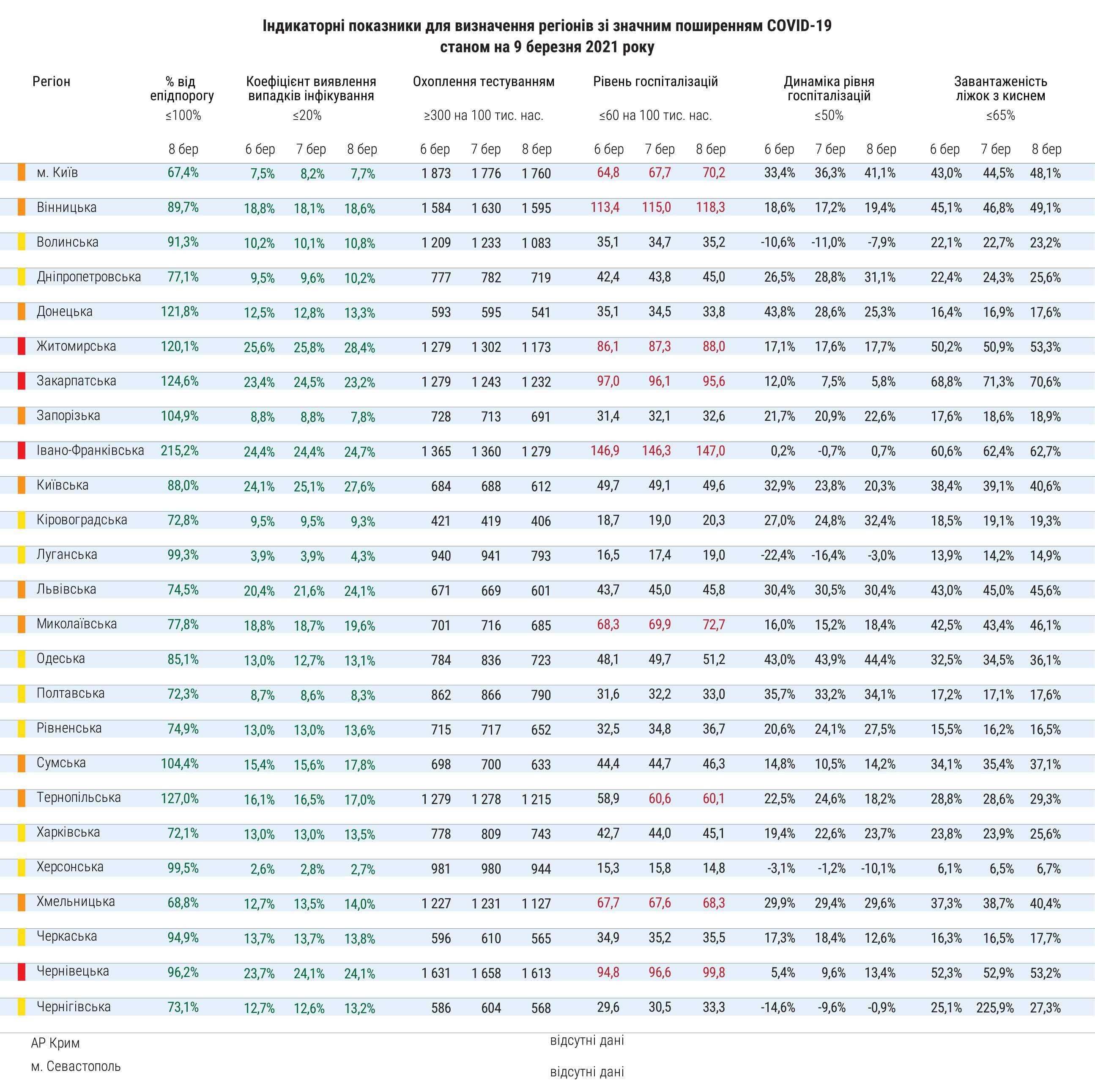 9 марта Министерство здравоохранения обновило индикаторные показатели для определения регионов со значительным распространением COVID-19, передает Час Пик.
