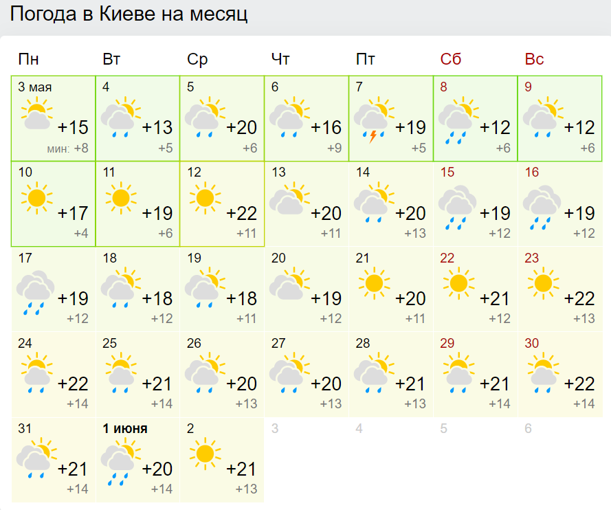 Предварительно, сильной жары в мае не прогнозируется. Температура в Киеве едва поднимется чуть выше 20 градусов.