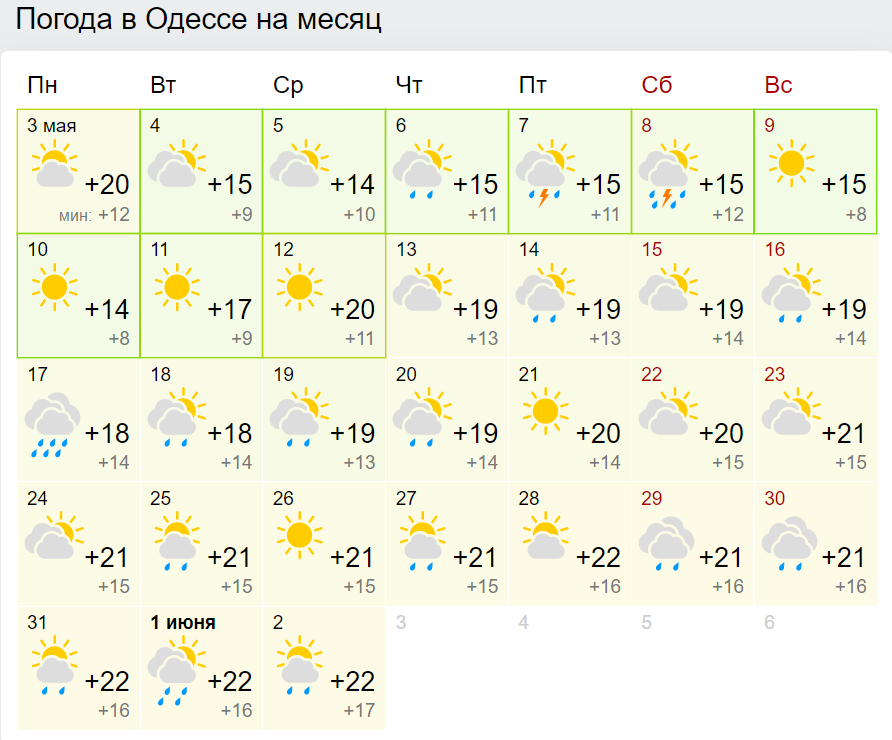 Жаркой погоды не ожидается и на юге Украины: погода в Одессе мало чем будет отличаться от киевской.