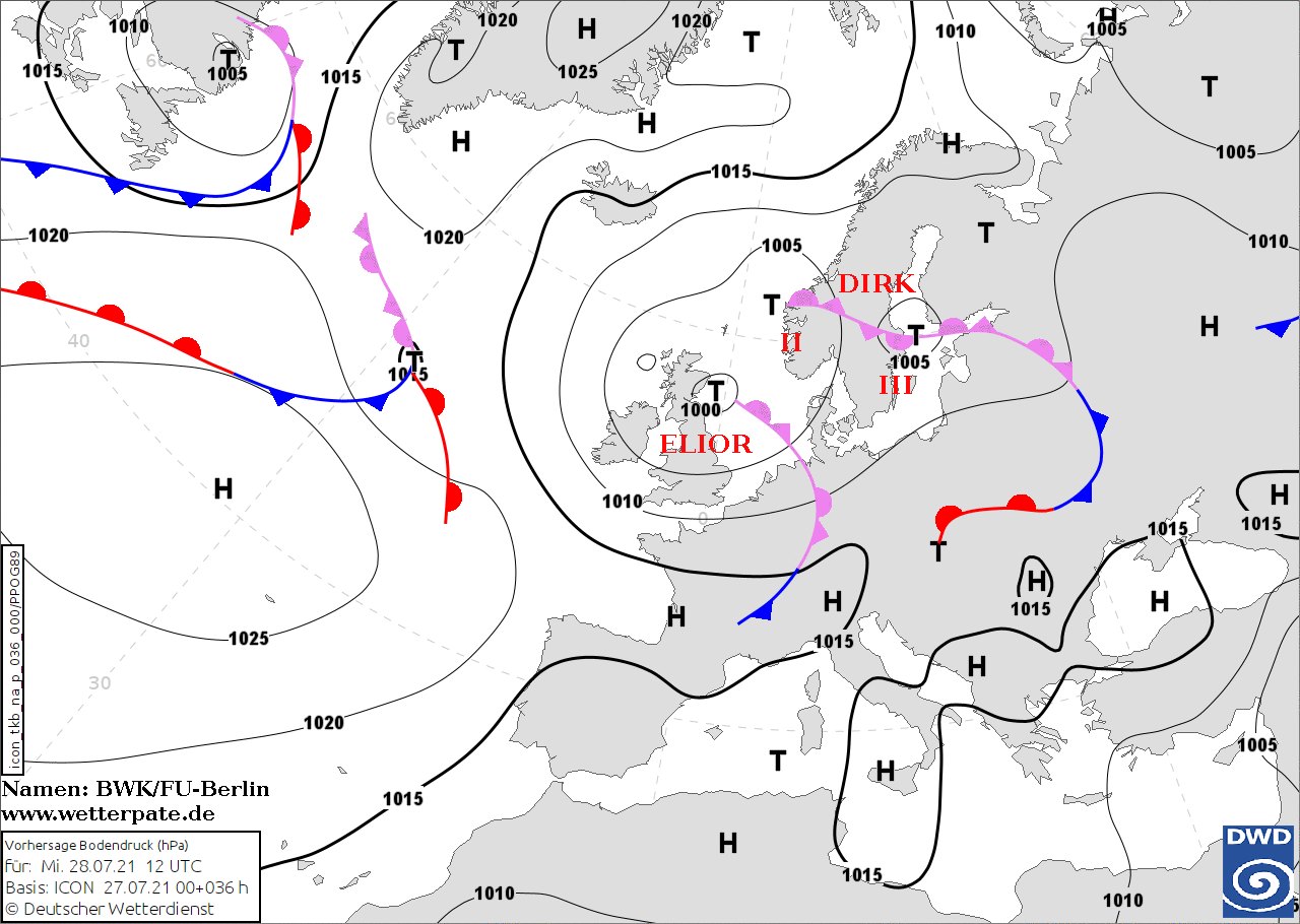 По ее словам, северные циклоны Elior и Dirk 28-го июля спровоцируют дожди с грозами на значительной части Европы, кроме юга континента.
