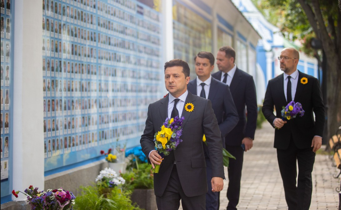 В церемонии чествования памяти погибших защитников также приняли участие руководитель Офиса президента Андрей Ермак, председатель Верховной Рады Украины Дмитрий Разумков, премьер-министр Денис Шмигаль.