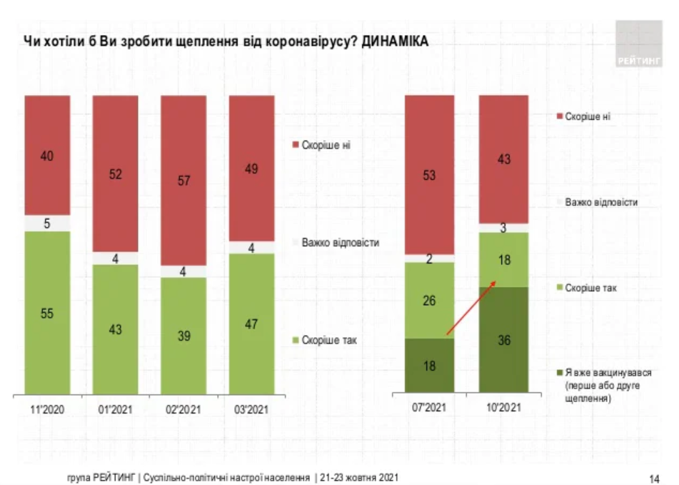 Данные получены социологической группой "Рейтинг" в ходе соцопроса, который проводился 21-23 октября 2021 года, передает Час Пик.