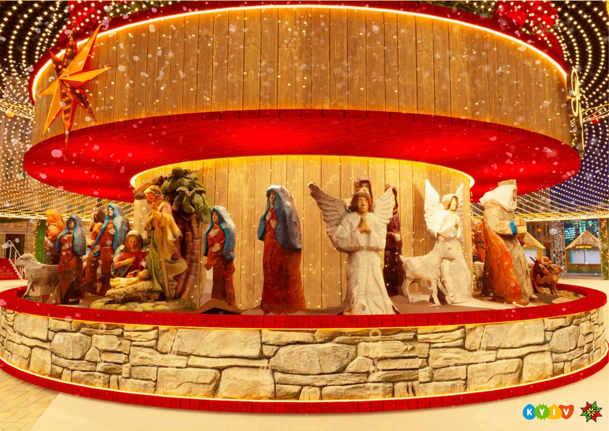 Президент компании Folk Ukraine Игорь Добруцкий в интервью "Суспільному" сообщил, что скульптурное панно будет высотой 4 метра и длиной 38 метров. Шопка будет воспроизводить библейские сцены, связанные с рождением Иисуса. Действо можно будет увидеть, обойдя елку.