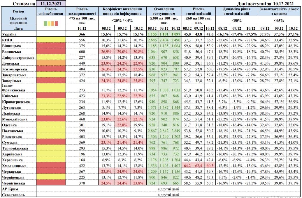 - "красная" зона: Винницкая, Волынская, Житомирская, Запорожская, Киевская, Николаевская, Сумская, Хмельницкая, Черкасская, Черниговская области.