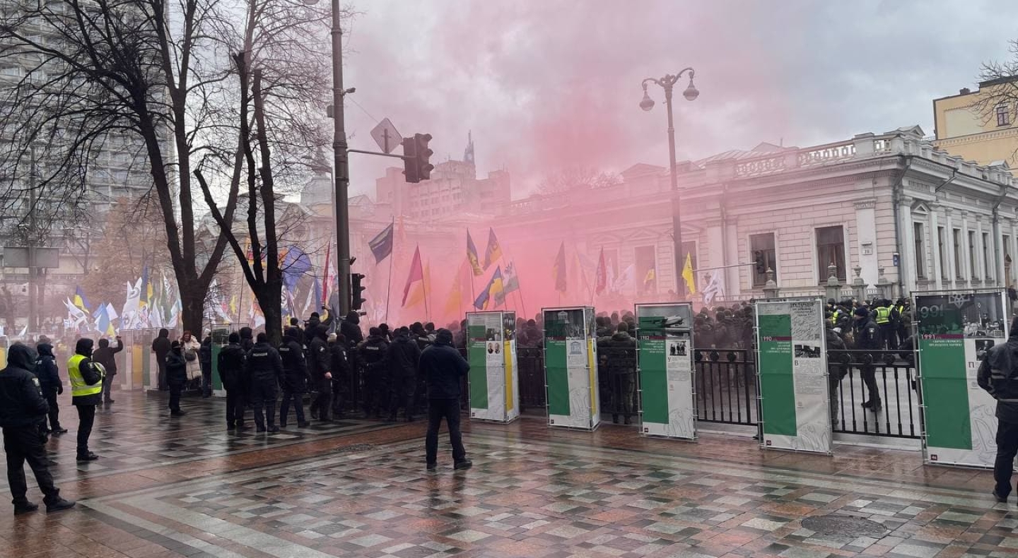 По данным полиции, некоторые участники митинга прибегли к противоправным действиям и начали блокировать подходы к Верховной Раде и бросать пиротехнические средства. В результате взрыва петарды травмировалась женщина - участница акции. Сейчас врачи оказывают пострадавшей необходимую медицинскую помощь на месте.