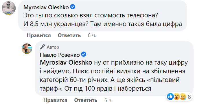 Бывший вице-премьер Павел Розенко оценивает затраты на раздачу смартфонов в 60-80 млрд гривен. Также он высказал предположение, что таким образом Зеленский хочет обеспечить себе голоса пенсионеров для переизбрания на второй президентский срок.