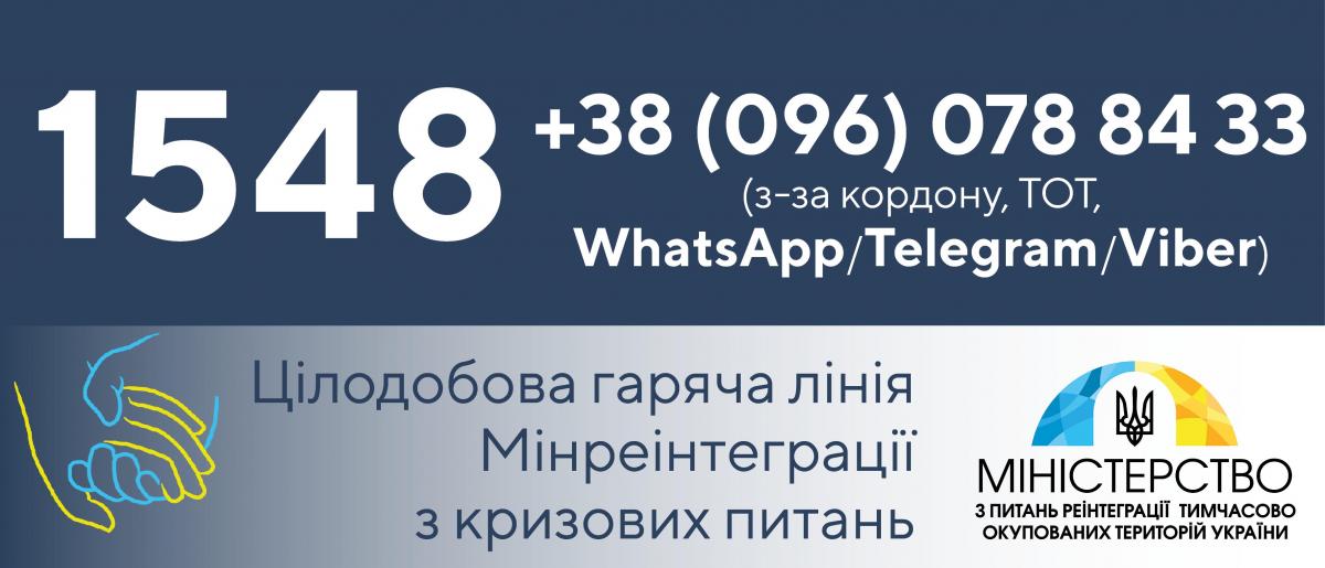 Министерство по вопросам реинтеграции запустило дополнительную "горячую линию". Это дополнительный канал связи по кризисным вопросам для граждан, находящихся за границей или на временно оккупированных территориях.