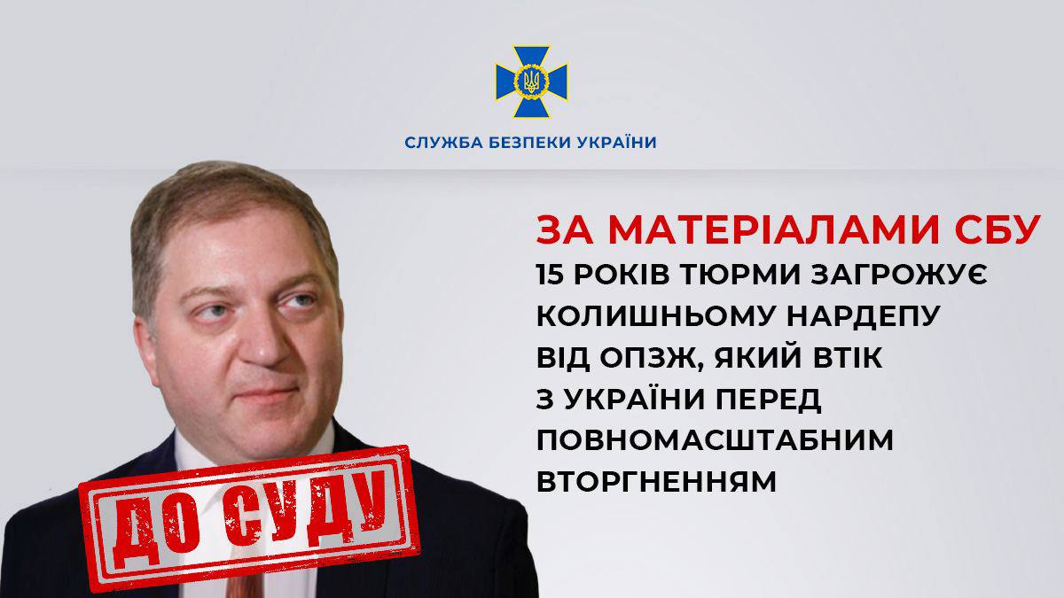 По материалам СБУ 15 лет тюрьмы грозит бывшему нардепу от ОПЗЖ, который сбежал из Украины перед полномасштабным вторжением.