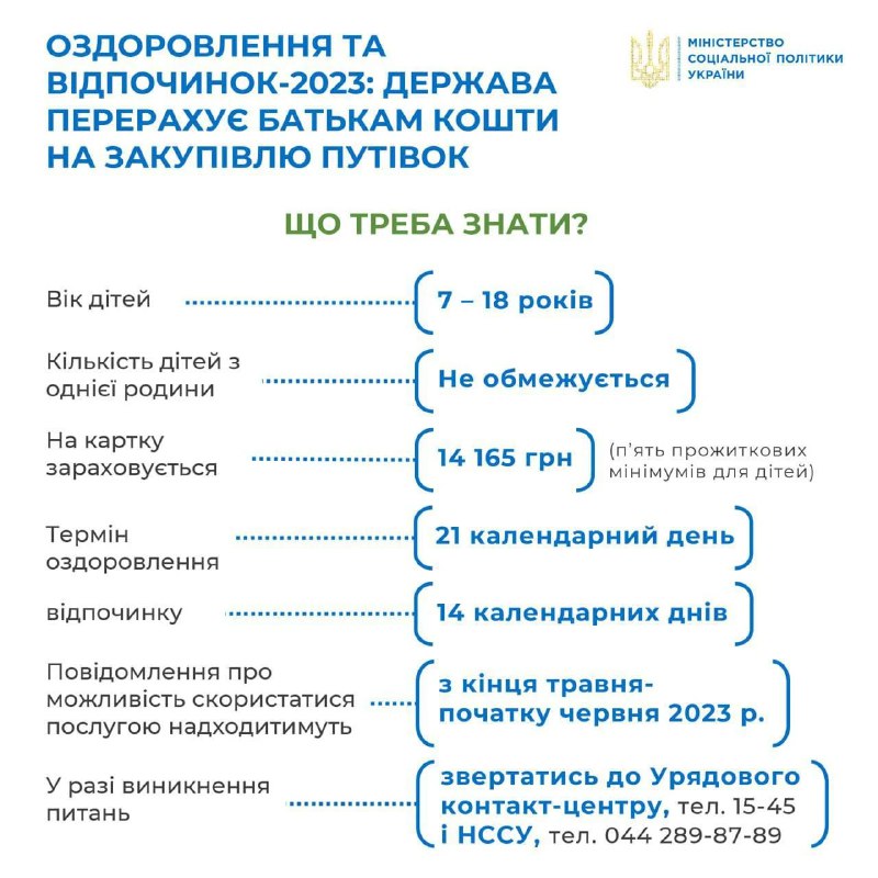 С 1 июня Кабинет министров запустил программу монетизации детского оздоровления. Деньги может получить родитель с детьми с инвалидностью, либо же многодетные семьи из определенного перечня областей.