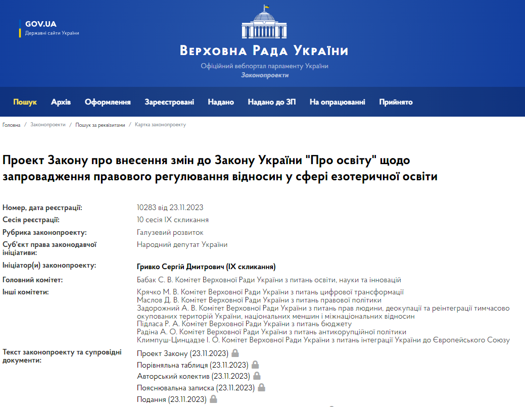 В предложении к законопроекту говорится о введении определения эзотерического образования и создании реестра в государственной электронной базе.