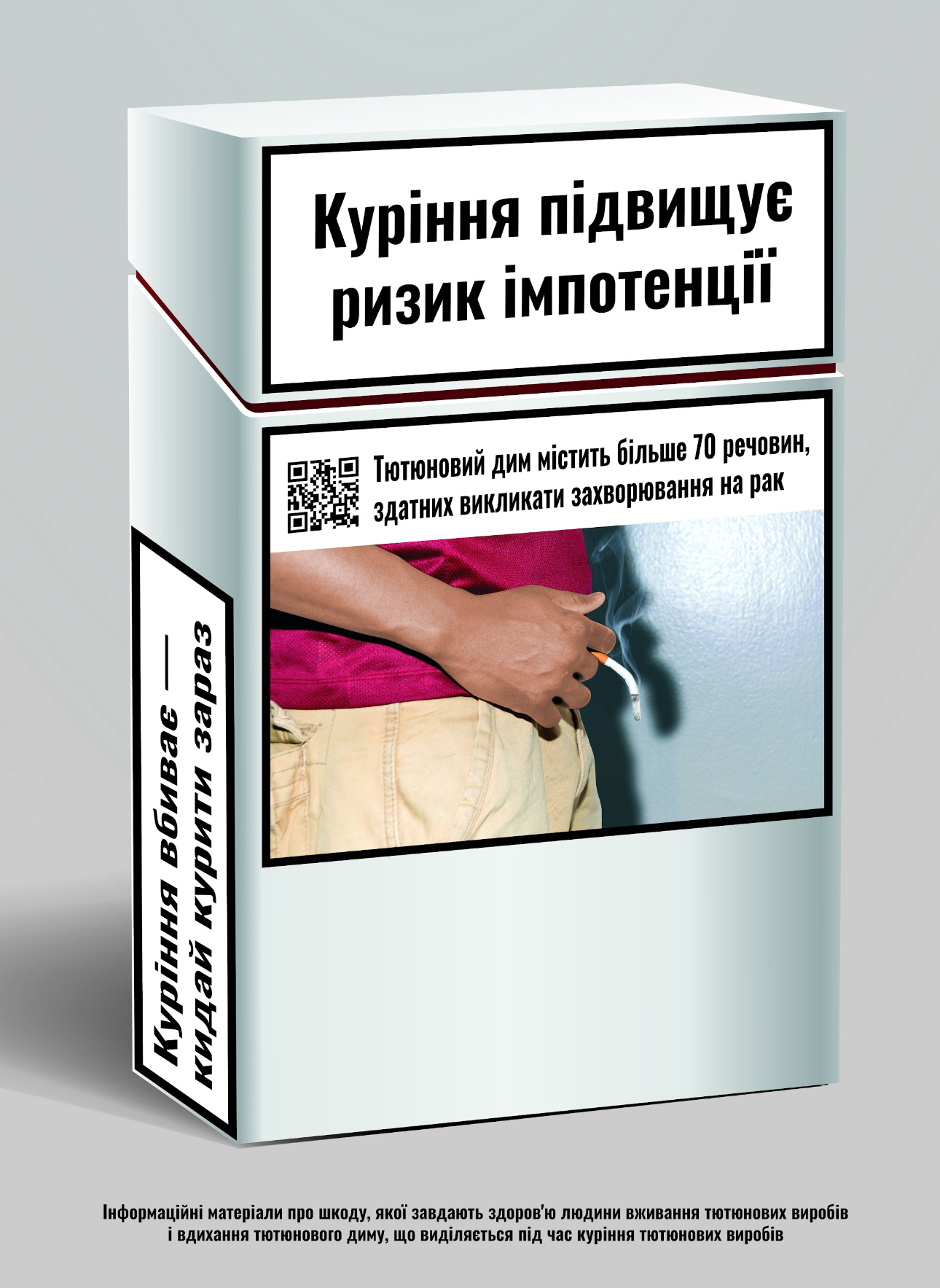"27% населения Украины старше 18 лет - нынешние курильщики. Медицинские предупреждения на упаковках мотивируют бросить курить и уменьшают привлекательность табака для людей без сформированной зависимости, особенно среди молодежи. А QR-код, который ведет на сервис "Я бросаю курить", увеличит эффективность медицинских предупреждений и повысит успешность попыток бросить курить. Человек, который за день выкуривает пачку сигарет, увидит предупреждение о вреде курения каждый раз, когда берет пачку, — это минимум 20 раз в день и 7000 раз в год", — заверила Наталья Гриб, и.о. руководителя отдела профилактики неинфекционных заболеваний ЦОЗ.